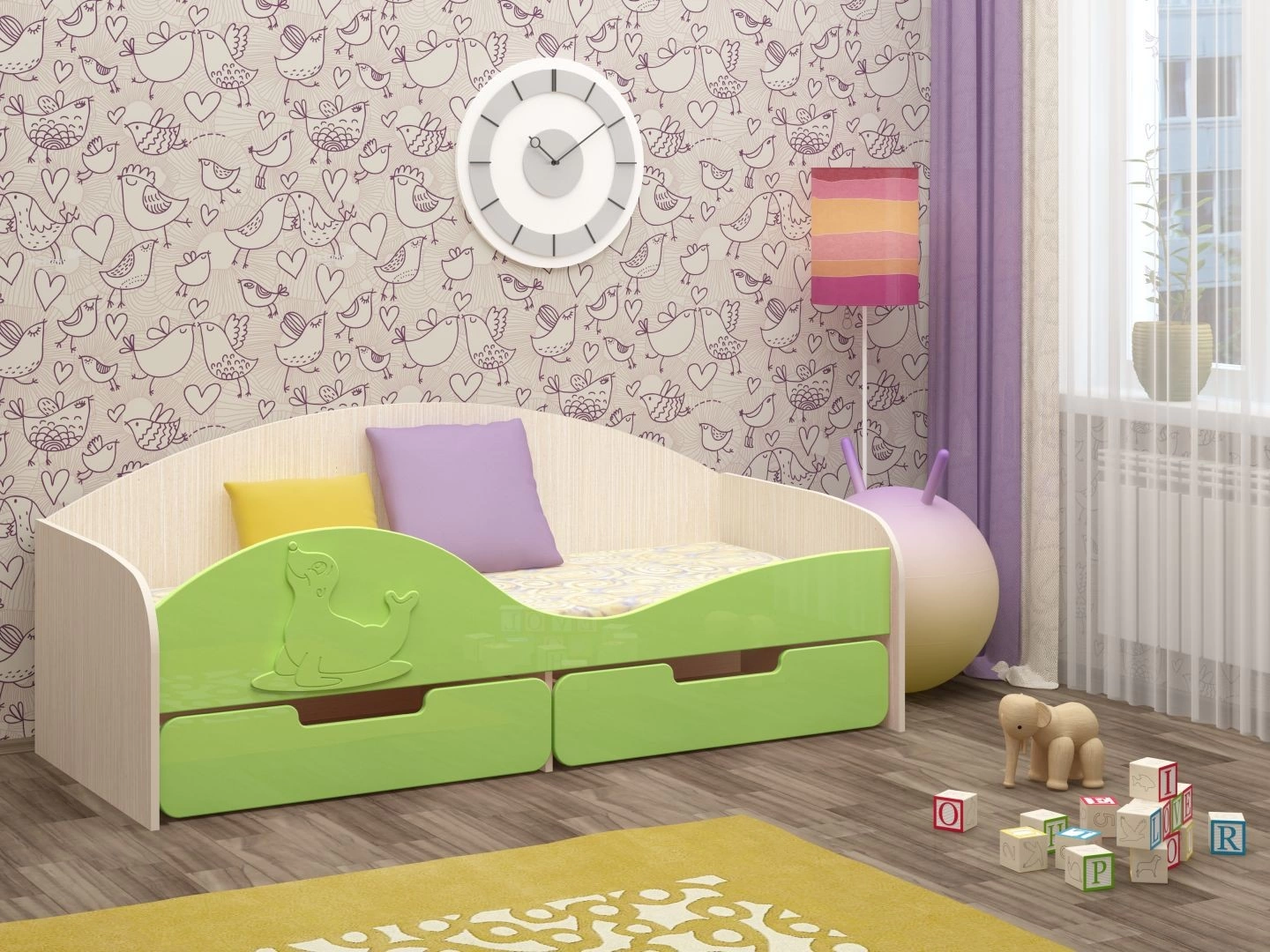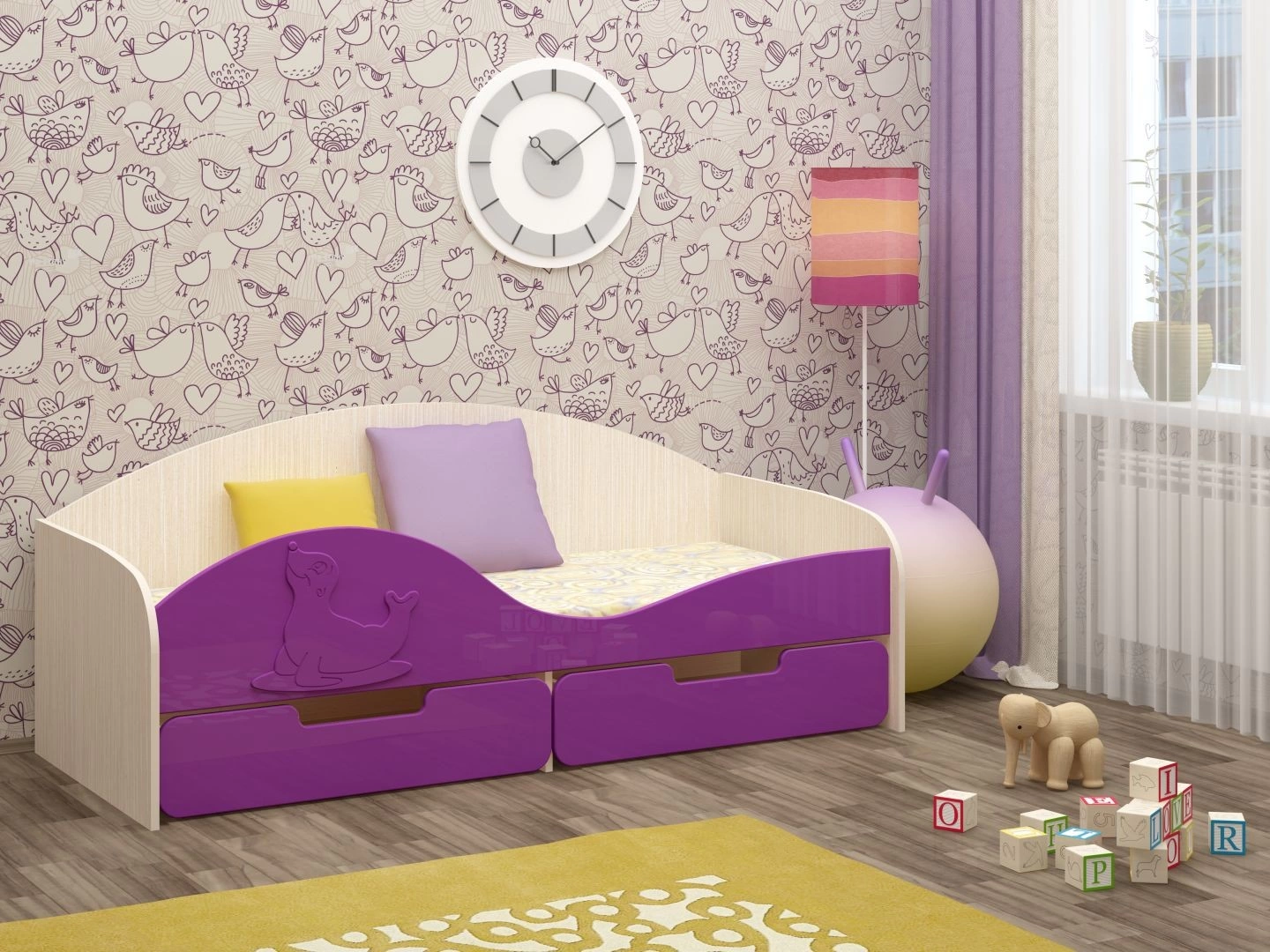 Кровать "Юнга-8" МДФ - превосходный выбор для детской комнаты вашего ребенка. Кровать оснащена бортиком с накладкой в виде милого тюленя, который защищает вашего ребенка от возможного падения во сне. Снизу кроватки находятся два выдвижных ящика, в которых удобно хранить детские игрушки, одежду или белье. Эта оригинальная кроватка поразит Вас своим милым дизайном.
