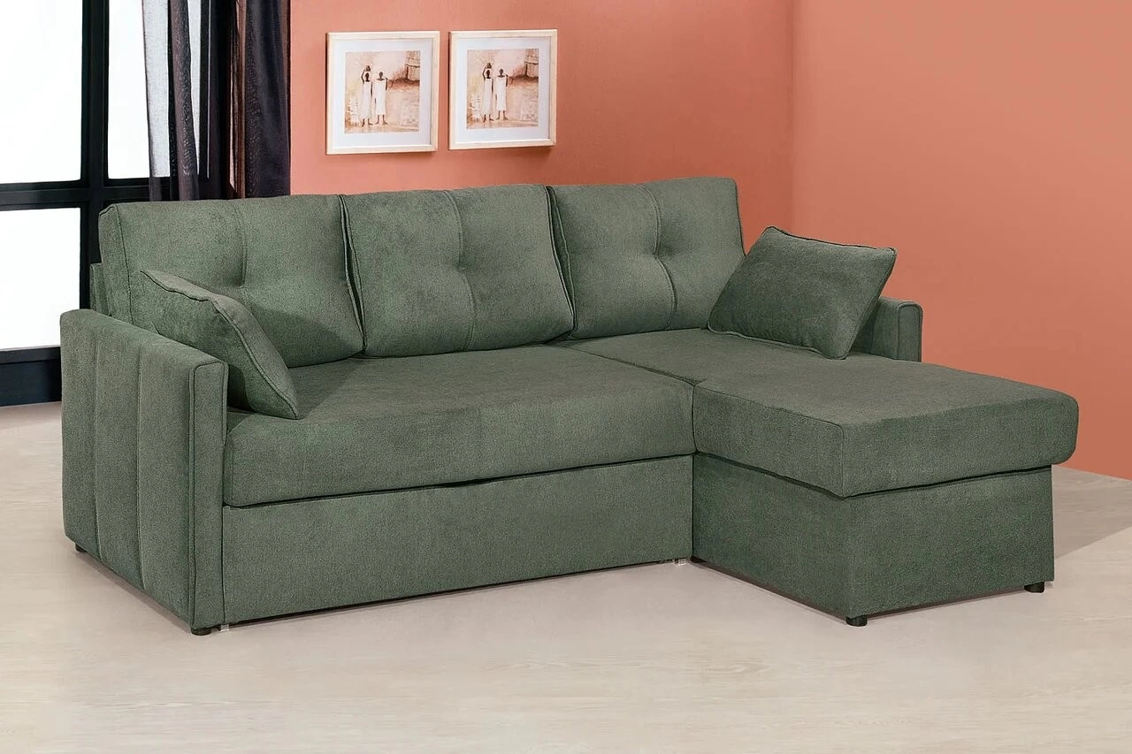 - Каркас диванной части, спального места и сиденья оттоманки: металлический