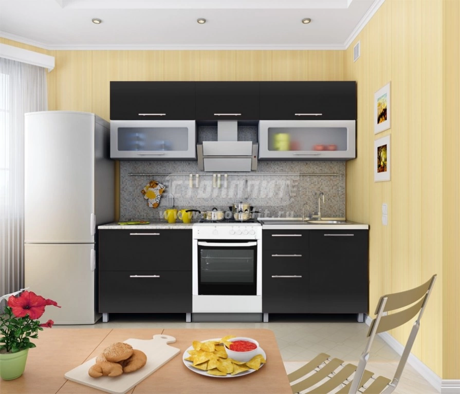 Современная и оригинальная кухня Анна черный металлик органично впишется в помещение, выдержанное в стилях хай-тек, модерн и минимализм. Представленная модель выгодно отличается продуманной эргономичной конструкцией и не занимает много места. В комплект кухни Анна Столплит входят три горизонтальные полки, два шкафа, два накладных ящика, четыре фасада и две витрины. Это позволяет расположить на кухне все необходимые вещи, спрятать от посторонних глаз габаритную посуду и прочий столовый инвентарь. Все предметы мебели данного комплекта выполнены из надежных высококачественных материалов, что гарантирует их долгий срок службы. Стильная цветовая палитра выгодно подчеркнет вкус владельца и органично дополнит общее концептуальное оформление дома или квартиры.