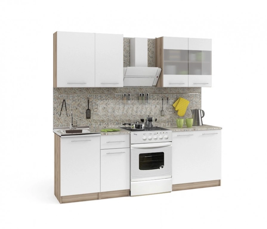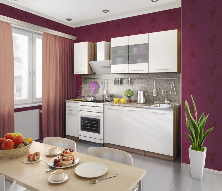 Кухонный гарнитур «Элен» - ваша любовь с первого взгляда! И вы уже сами понимаете, почему. Это непревзойденный стиль, идеальные формы, притягательный цвет, эргономичность и практичность. Удобное расположение шкафов и столов позволяет создать комфортную рабочую зону даже на небольшой кухне. Благородный белый прекрасно сочетается со светлой фурнитурой и матовым стеклом, создавая отличное настроение и придавая современное звучание интерьеру кухни. Один взгляд на «Элен», и вы поймете, что поражены в самое сердце!