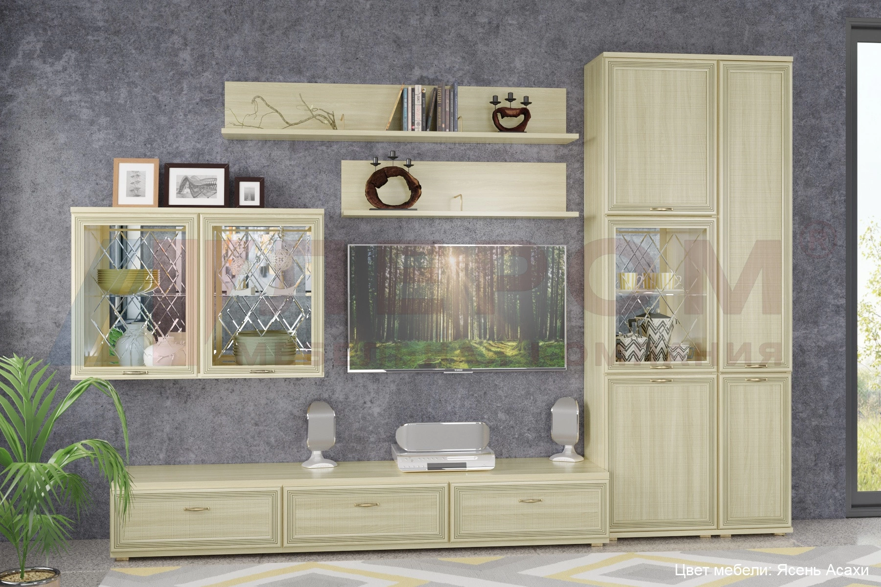 Размер ниши под телевизор: ВхШ - 1148х1260 мм.