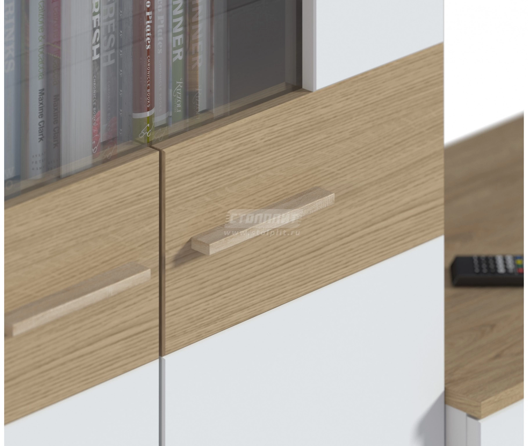 Материал: корпус ЛДСП ламинированная белая/гикори нат., фасад МДФ дуб светлый/белый