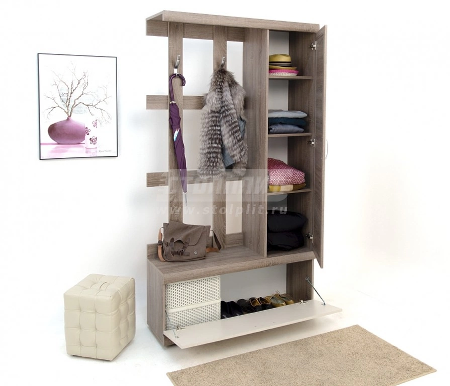 Сегодня благодаря готовым интерьерным решениям у вас есть возможность создать функциональную и стильную прихожую по доступной цене. «Монако» отлично справится с этой задачей. Компактный модуль включает в себя комбинацию из самых необходимых элементов: объемная полка для обуви, закрытый шкаф с секциями для аксессуаров и открытую зону с крючками для верхней одежды. Пусть ваша прихожая воспринимается как синоним красоты, практичности и хорошего вкуса.