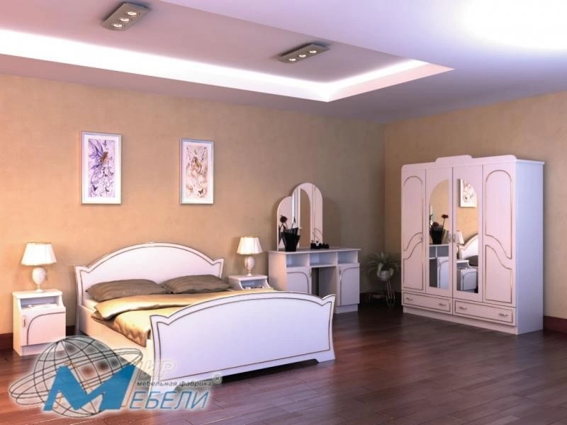 Ценителям красивой мебели точно понравится спальный гарнитур «Регина». В этом комплекте есть все необходимые элементы: разместив их в комнате, можно каждый день наслаждаться уютом и полноценным отдыхом. Комплектация данной модели подразумевает наличие кровати с ламелями, четырехстворчатого шкафа с дополнительными выдвижными ящиками внизу, трельяжа и двух прикроватных тумбочек. Шкаф имеет интересный дизайн и оснащен множеством полок для вещей и большим зеркалом. Еще одно преимущество данного гарнитура – кровать поставляется уже с матрасом. Высокое качество изготовления и достойный вид – это весомые факторы в пользу того, чтобы купить этот современный спальный гарнитур с матрасом!