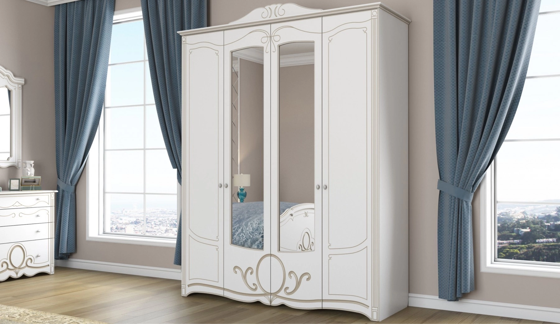 - Шкаф 4-х Створчатый: Ширина 1808 мм х Глубина 626 мм x Высота 2335 мм