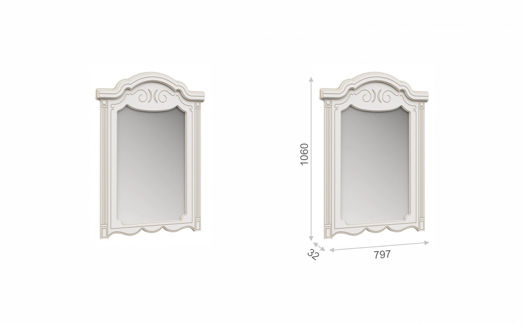 - Зеркало: Ширина 797 мм х Глубина 32 мм x Высота 1080 мм