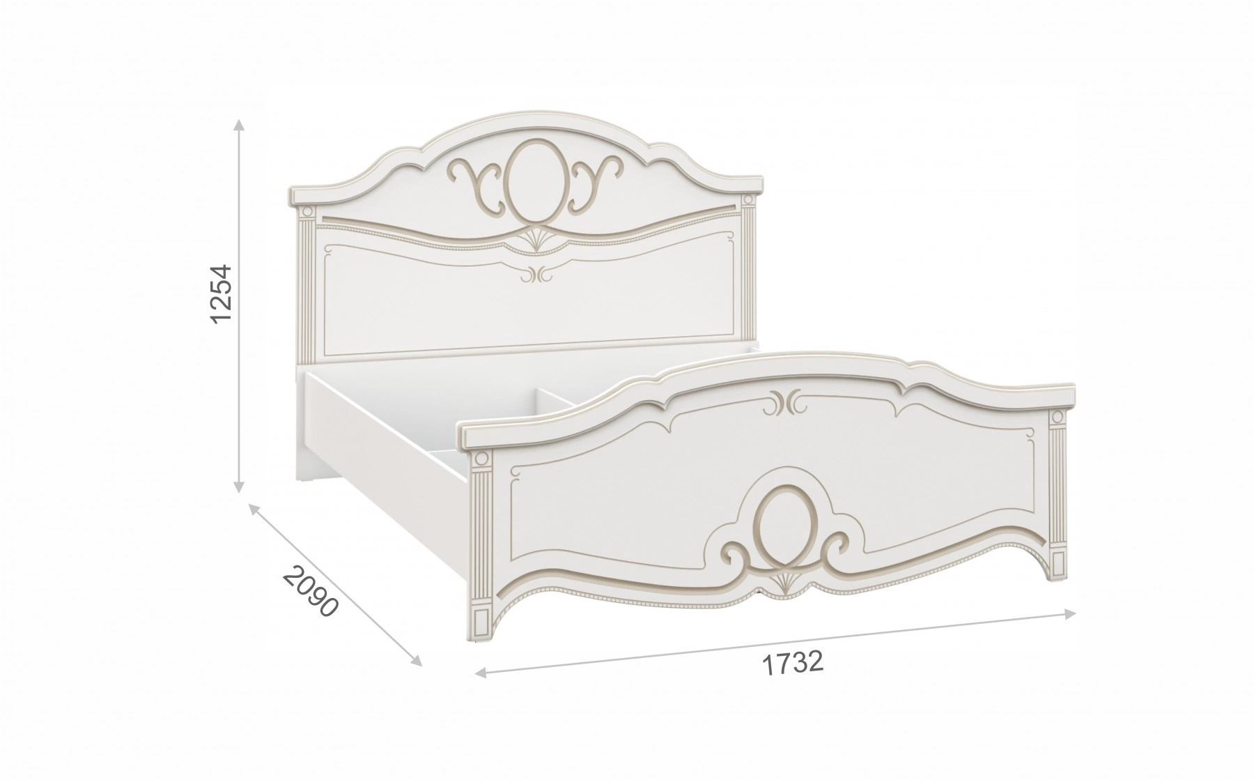 - Кровать: Ширина 1732 мм х Глубина 2090 мм x Высота 1254 мм/ Спальное место 1600 x 2000мм)