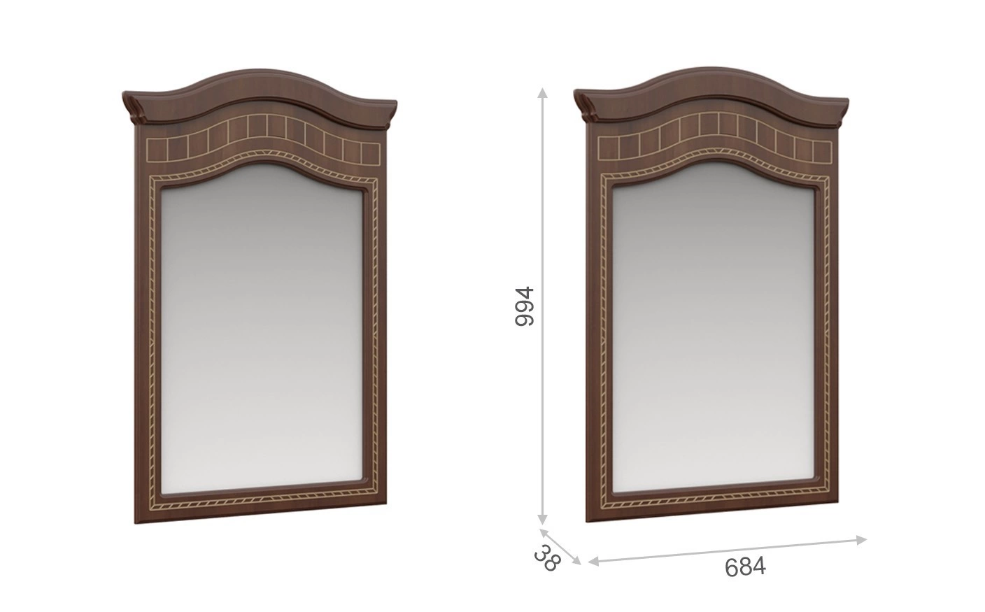 - Зеркало: Ширина 684 мм х Глубина 38 мм x Высота 994 мм
